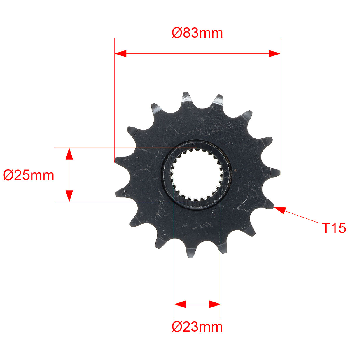 Звезда имеет 15 зубьев. Подходит для цепей с маркировкой 530. Все измерения указаны на фотографиях в карточке товара.