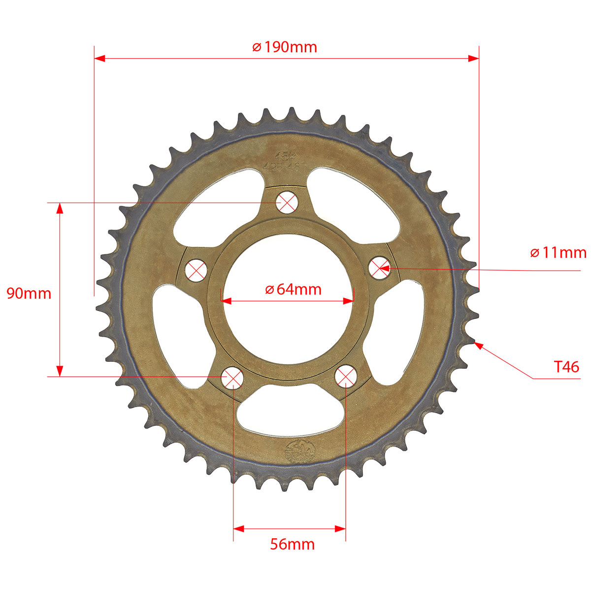 Имеет 46 зубьев. Подходит для цепей с маркировкой 428. Все измерения указаны на фотографиях в карточке товара.