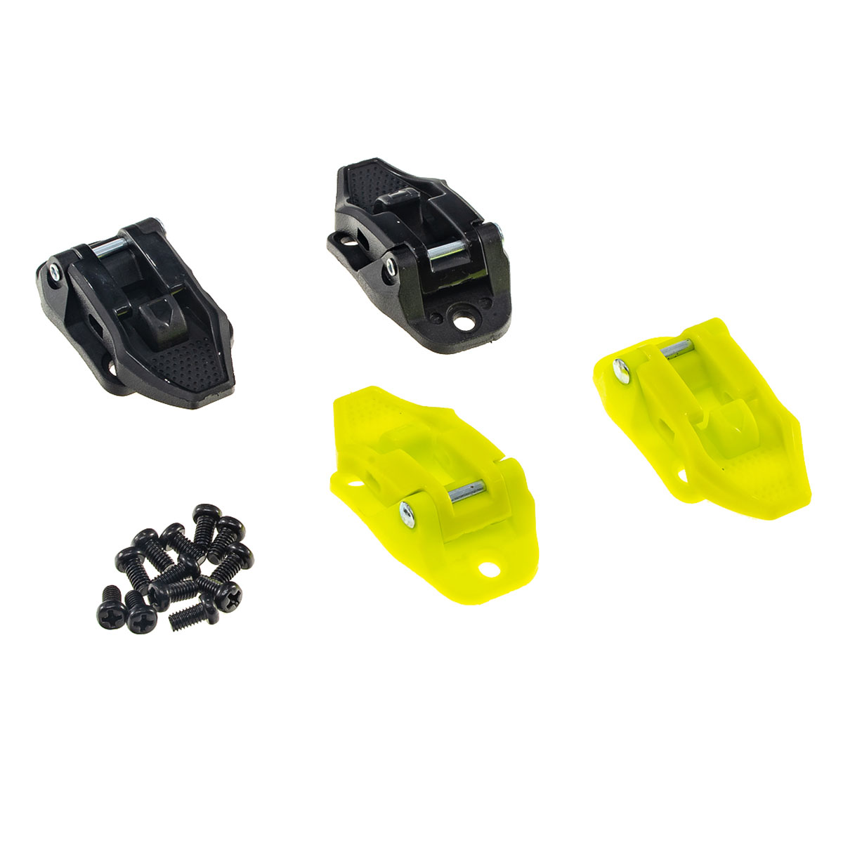 В комплект входит четыре пряжки, выполненных в чёрном и ярко-жёлтом флюоресцентном цвете и набор крепёжных стальных винтов.