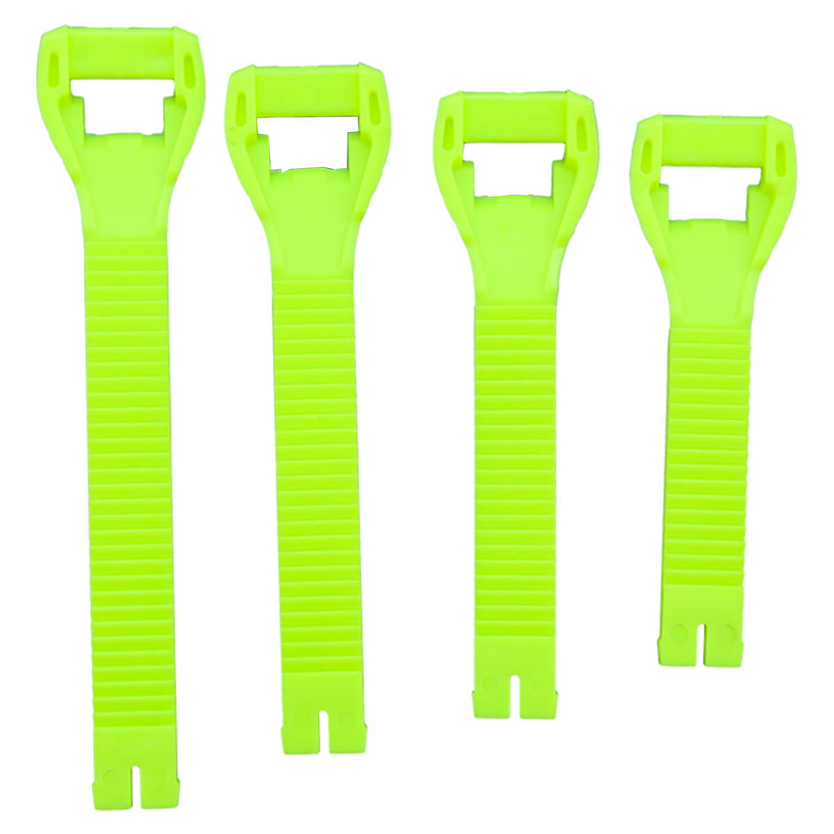 В комплект входит четыре ремешка длиной 18 см, 23 см, 27 см и 33 см. Ремешки выполнены в ярко-жёлтом флюоресцентном цвете.