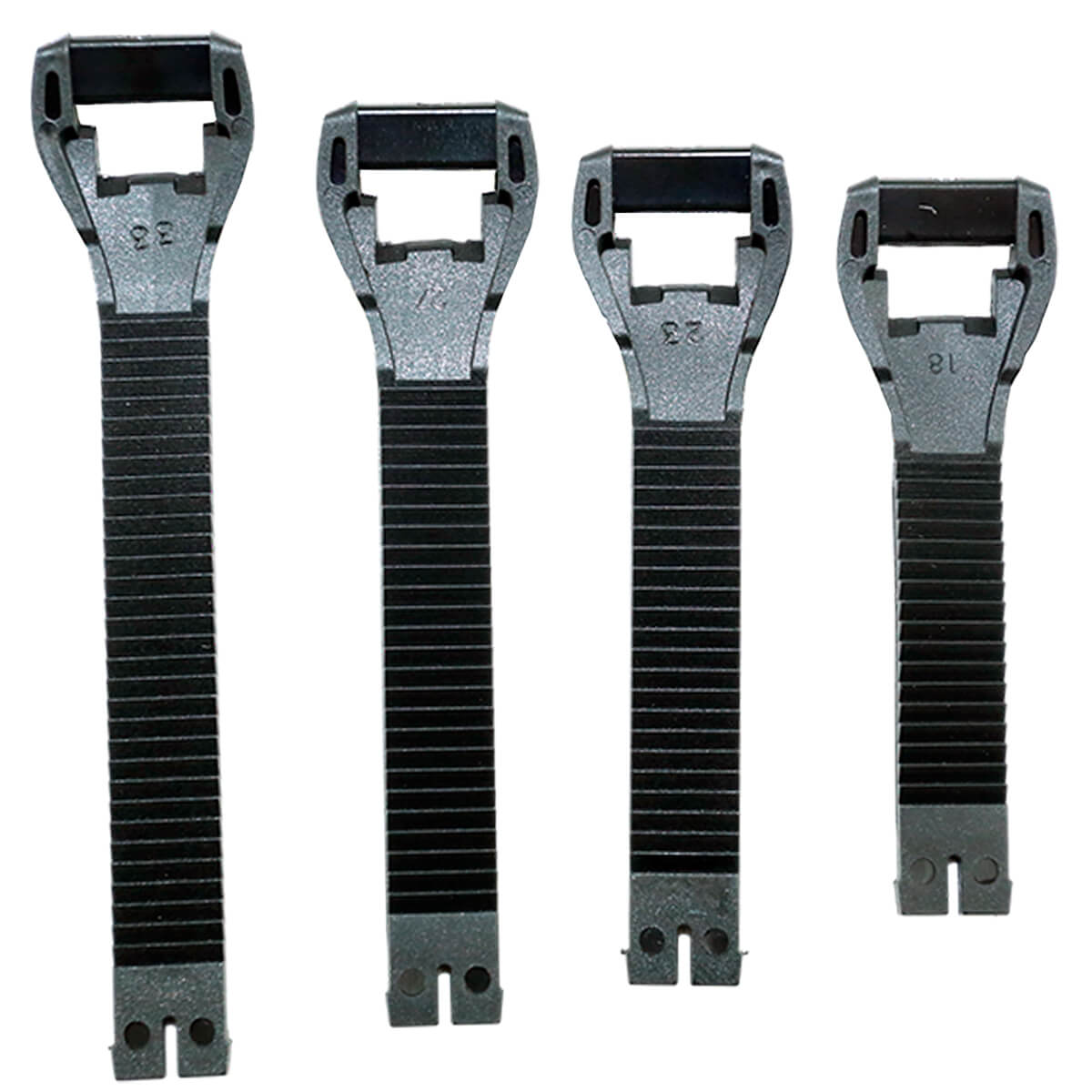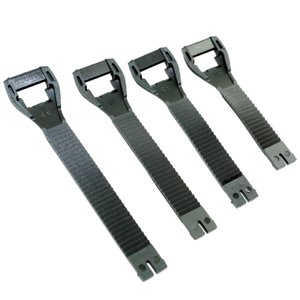 В комплект входит четыре ремешка длиной 18 см, 23 см, 27 см и 33 см, выполненных в чёрном цвете.