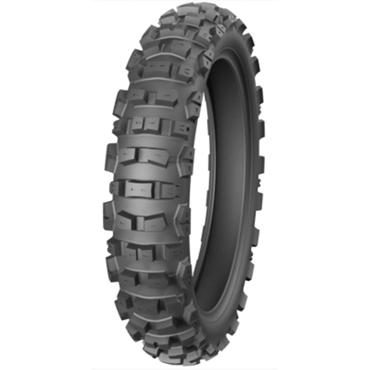 Расширенное пятно контакта повышает срок службы и износоустойчивость. Прогнозируемая тяга обеспечивается массивными шашками по центру покрышки. Шина эффективно самоочищается от грязи, крупных частиц земли и камней, что способствует значительному улучшению проходимости на сложных трассах.