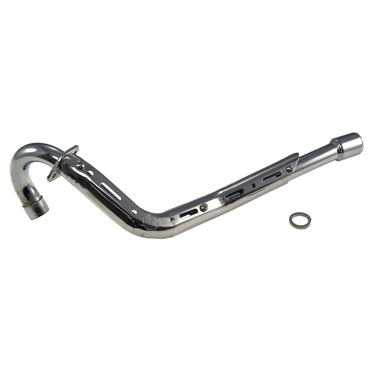 Приёмная труба глушителя KAYO TS90 (после 2022 г.) соединяет выпускные клапаны двигателя с остальными частями выхлопной системы, включая катализатор и глушитель. Выводит отработанные газы, предотвращая их накопление в камере сгорания.